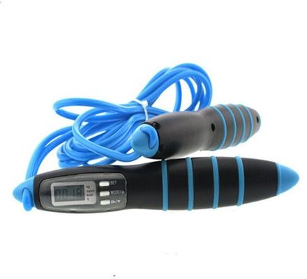 La cuerda de salto de calorías con pantalla LCD digital es un equipo de acondicionamiento físico que puede contar y mostrar salto, calorías quemadas, tiempo, alarma, etc.